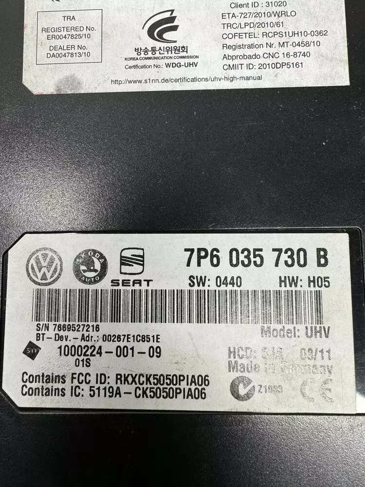 Також шукають: блок Bluetooth Volkswagen, 7P6035730B, hands free VW, модуль Bluetooth VAG.